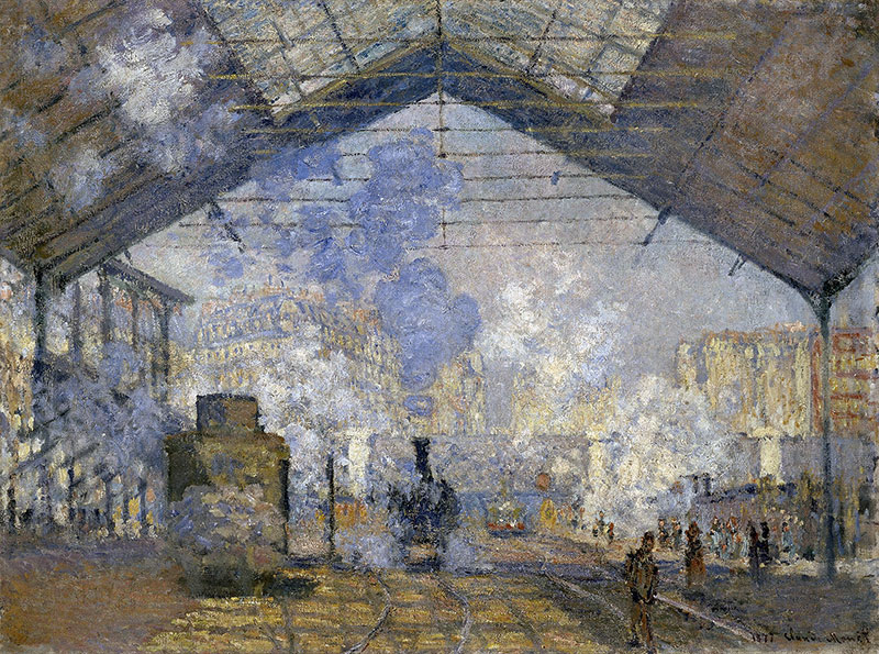 Chi mai sarebbe andato in giro con un vestito bucato era invece Claude Monet. Sbalordiva tutti con la sua eleganza. Cominciò a indossare camicie coi polsini di pizzo quand’era solo un giovane squattrinato e liquidò una coetanea carina ma volgare, che gli faceva delle proposte, spiegandole che andava a letto solo con duchesse. «Oppure con le cameriere. Il giusto mezzo mi dà la nausea. L’ideale sarebbe la cameriera di una duchessa». Col suo portamento da dandy, agitando con noncuranza un bastone col pomello d’oro, fece colpo anche sul direttore delle Ferrovie dell’Ovest. «Mi chiamo Monet» si presentò. «E ho deciso di dipingere la vostra stazione. Ho esistato a lungo tra la Gare du Nord e la vostra, ma alla fine mi è parso di intuire che la vostra abbia più carattere». Malgrado il direttore non sapesse nulla di pittura, fece tutto quel che Monet gli ordinò. Per giornate intere fermò i treni, sfollò i marciapiedi e rimpinzò di carbone le locomotive affinché sbuffassero a dovere.